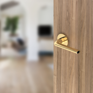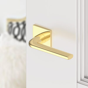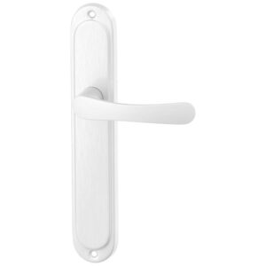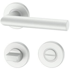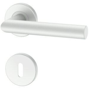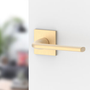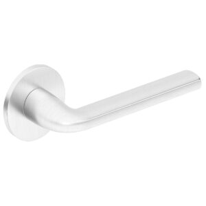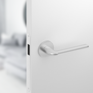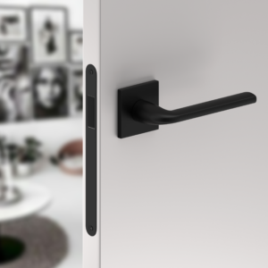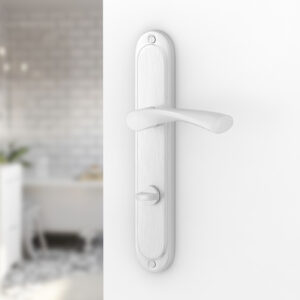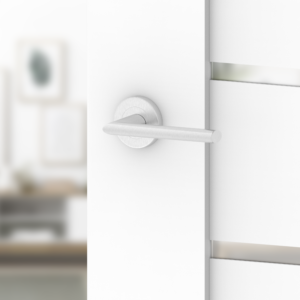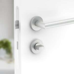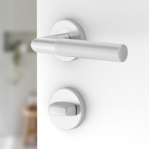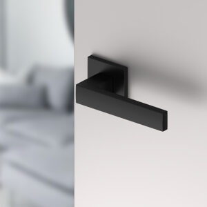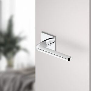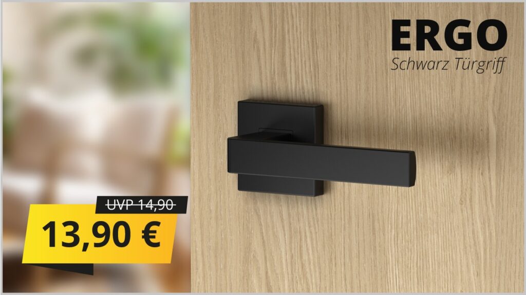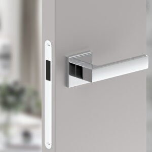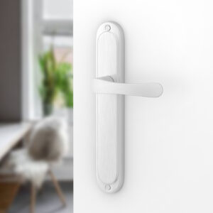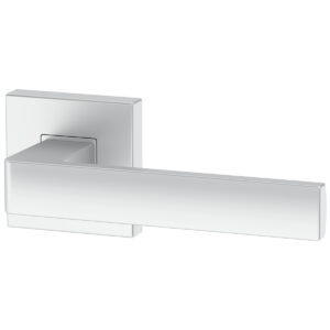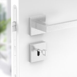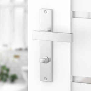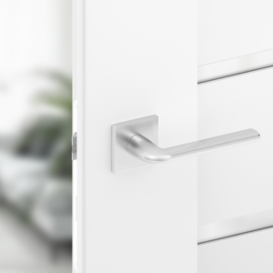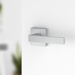 Der silberne, eckige Türbeschlag ERGO für Zimmertüren; Türgriff; Türklinke