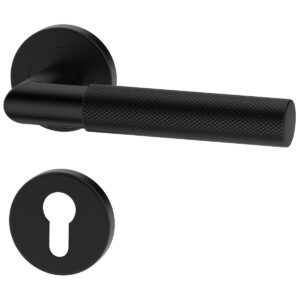 Der schwarze, runde Türbeschlag UNO für Türen mit Zylinderschloss PZ; Türgriff; Türklinke