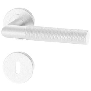 Der silberne, runde Türbeschlag UNO für Zimmertüren; Türgriff; Türklinke