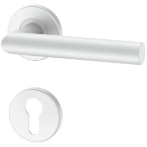 Der silberne, runde Türbeschlag UNO für Türen mit Zylinderschloss PZ; Türgriff; Türklinke