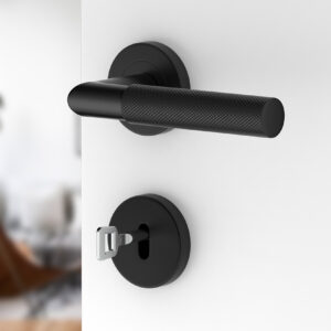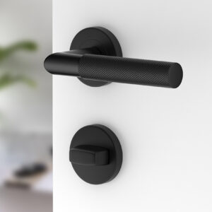 Der schwarze, runde Türbeschlag UNO für Badtüren WC; Türgriff; Türklinke