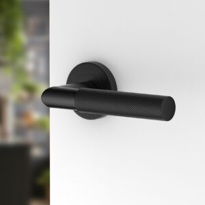 Der schwarze, runde Türbeschlag UNO für Türen mit Zylinderschloss PZ; Türgriff; Türklinke