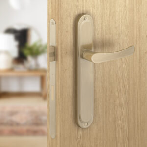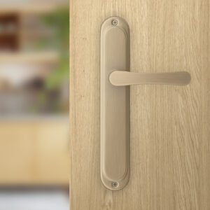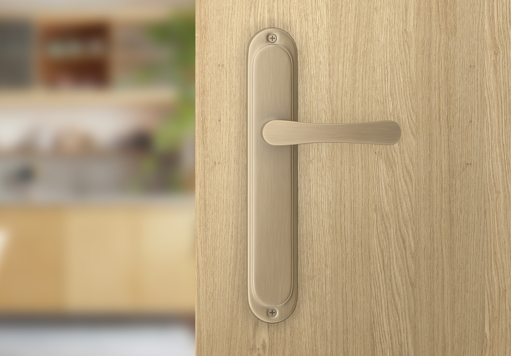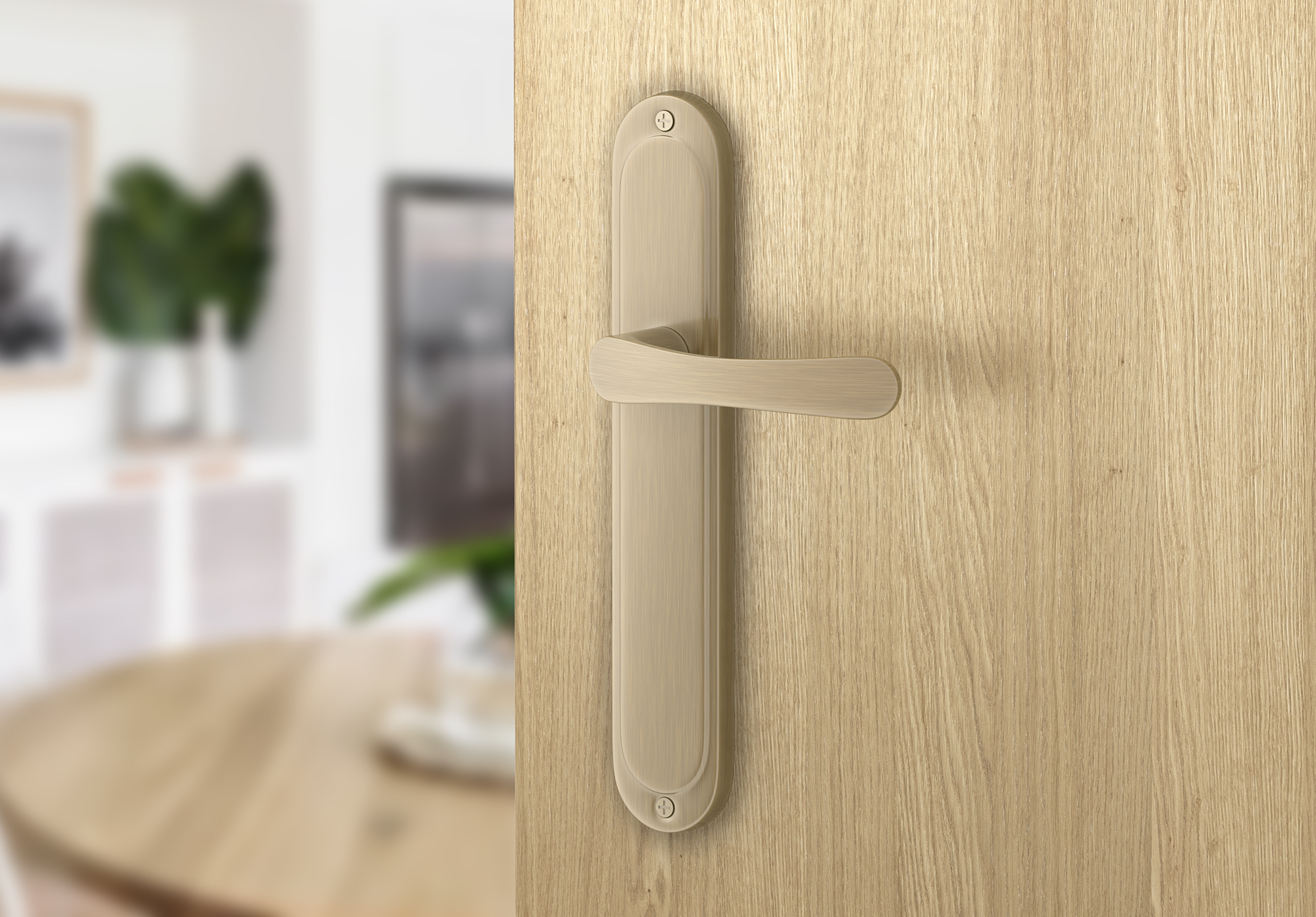 Ein klassischer Malmo-Griff für Zimmertüren mit zeitlosem Design, der perfekt zu Innenräumen im Retro-Stil passt. Der Türgriff ist in der stets modischen Bronze (Patina) -Farbe erhältlich.