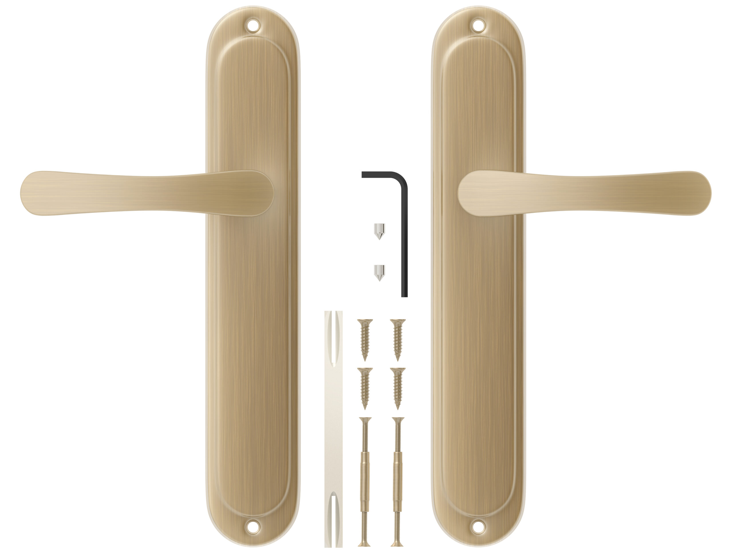 2 Türgriffe mit Blindschildgarnitur, inkl. Befestigungsmaterial.