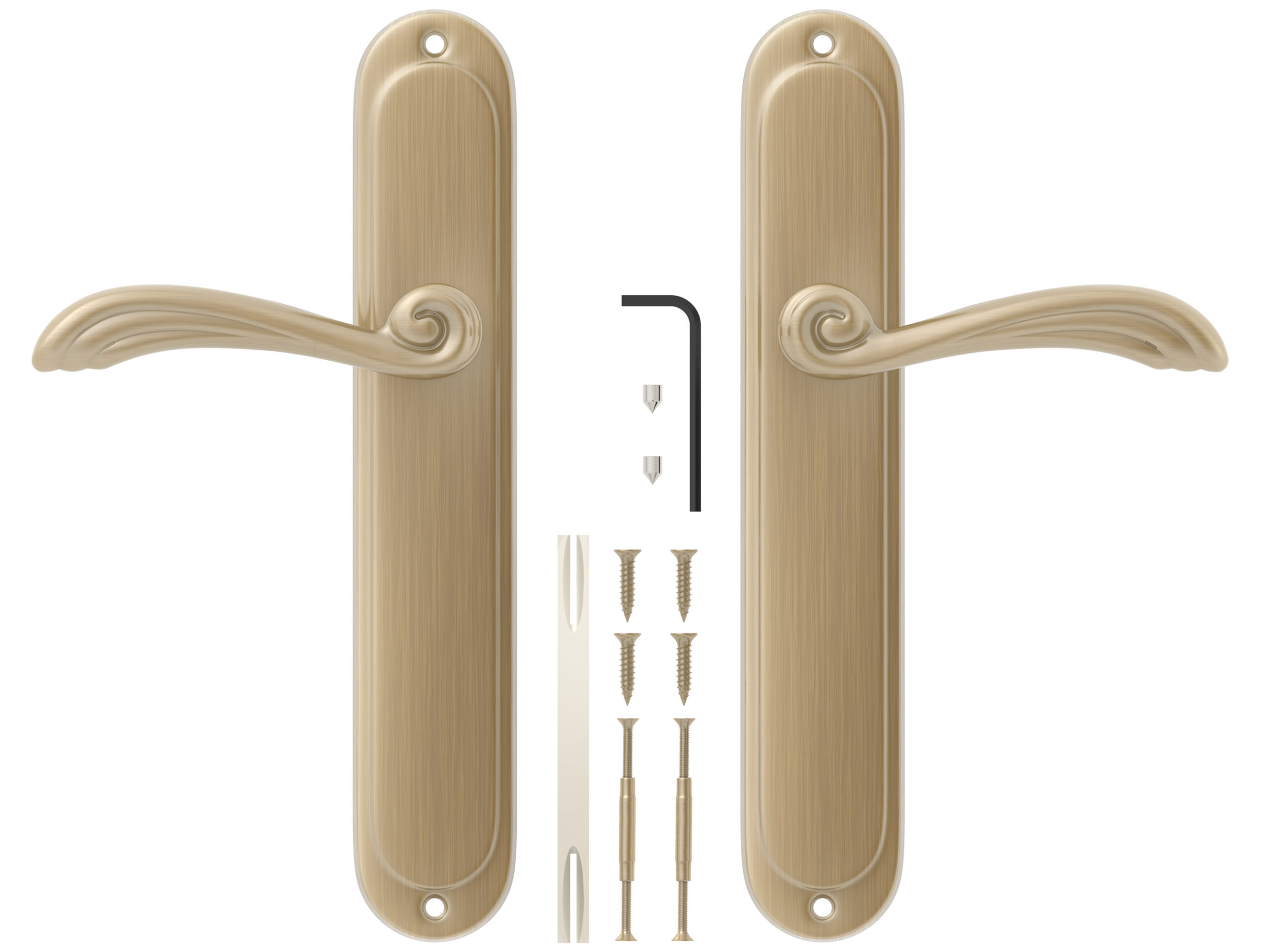 Das Türdrücker-Set besteht aus zwei Blindschildgarnitur Griffen für eine Tür. Ist universal und passt zu Links- als auch Rechtsflügel. Beigelegt sind natürlich auch alle nötigen Montageteile.