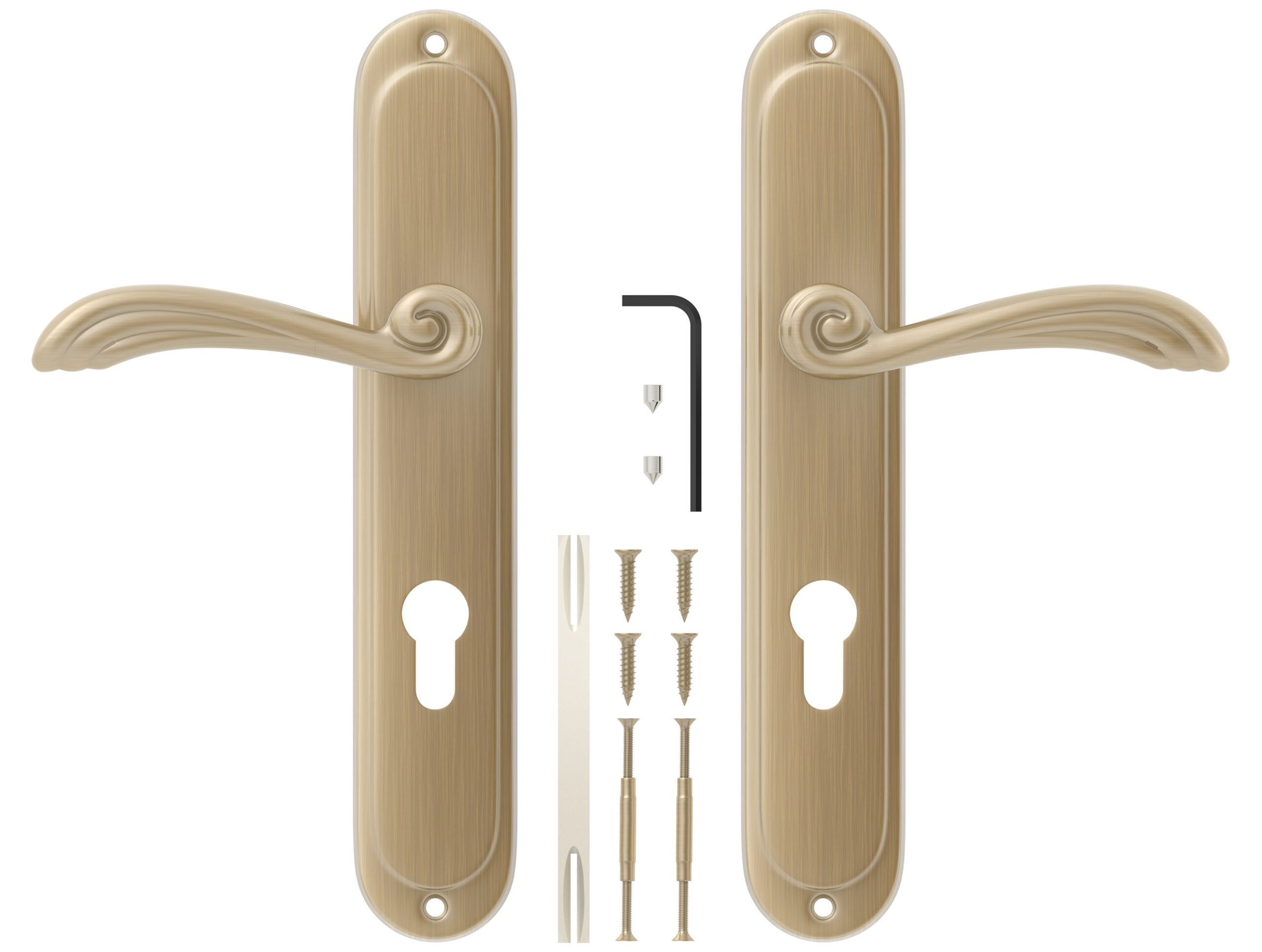 Das Türdrücker-Set besteht aus zwei PZ-Langschildgarnitur Griffen für eine Tür. Ist universal und passt zu Links- als auch Rechtsflügel. Beigelegt sind natürlich auch alle nötigen Montageteile.