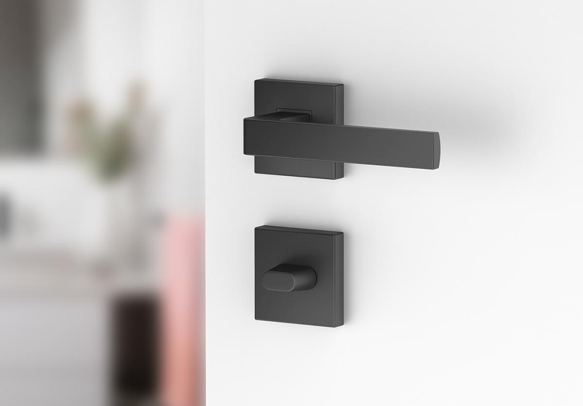 Ein quadratischer, Anthrazit Griff für Badezimmertüren mit minimalistischer Optik und perfekter Ergonomie.