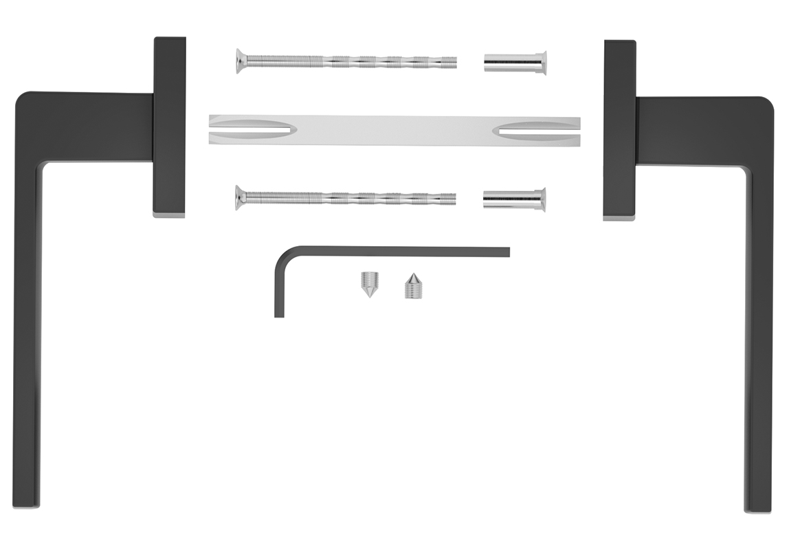Das Türdrücker-Set besteht aus zwei Griffen für eine Tür. Ist universal und passt zu Links- als auch Rechtsflügel. Beigelegt sind natürlich auch alle nötigen Montageteile.