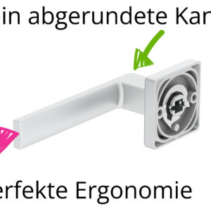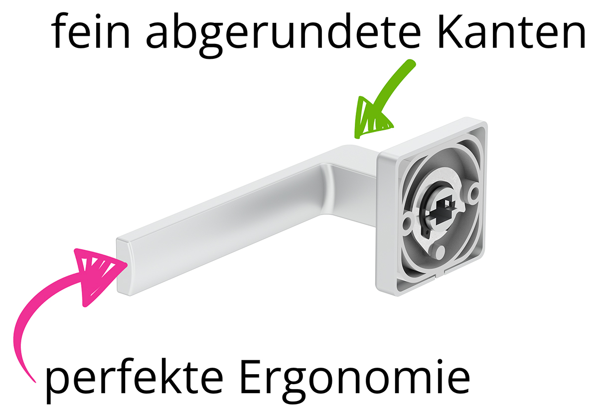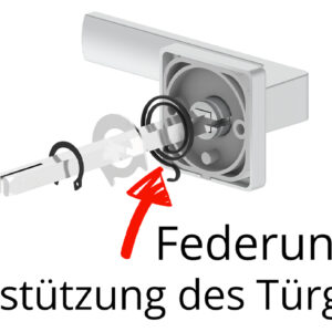 - Eine Federung zur Unterstützung des Türgriffes die dafür sorgt, dass der Türgriff nicht hängen kann – zuverlässig, langlebig und komfortabel.