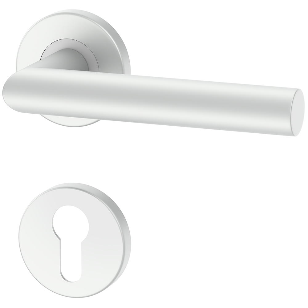 Das Türdrücker-Set besteht aus zwei Griffen und passenden Rosetten für eine Tür. Ist universal und passt zu Links- als auch Rechtsflügel. Beigelegt sind natürlich auch alle nötigen Montageteile.