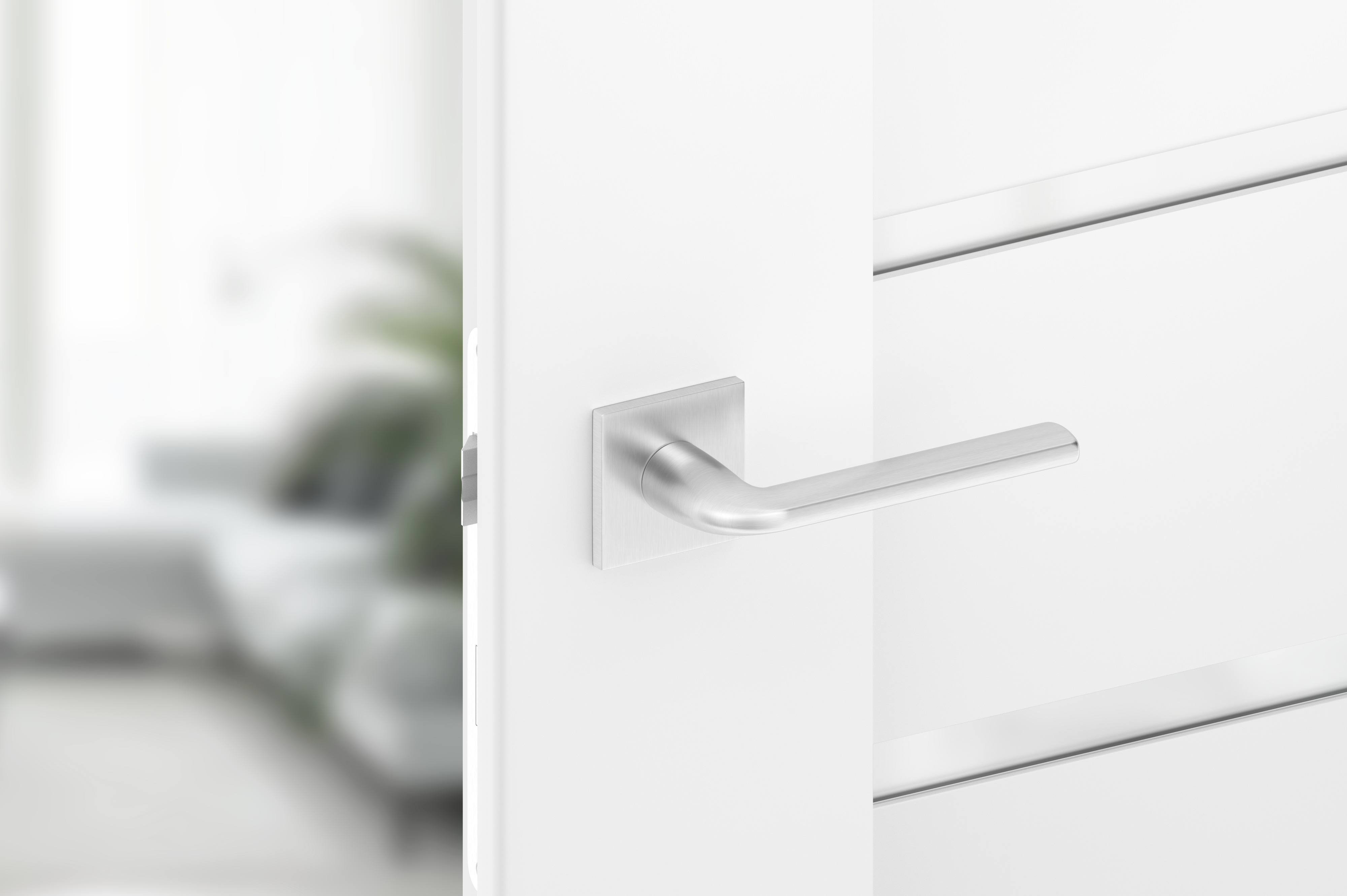 - Die Türklinke ist in der exklusiven Farbe Chrom satin erhältlich.