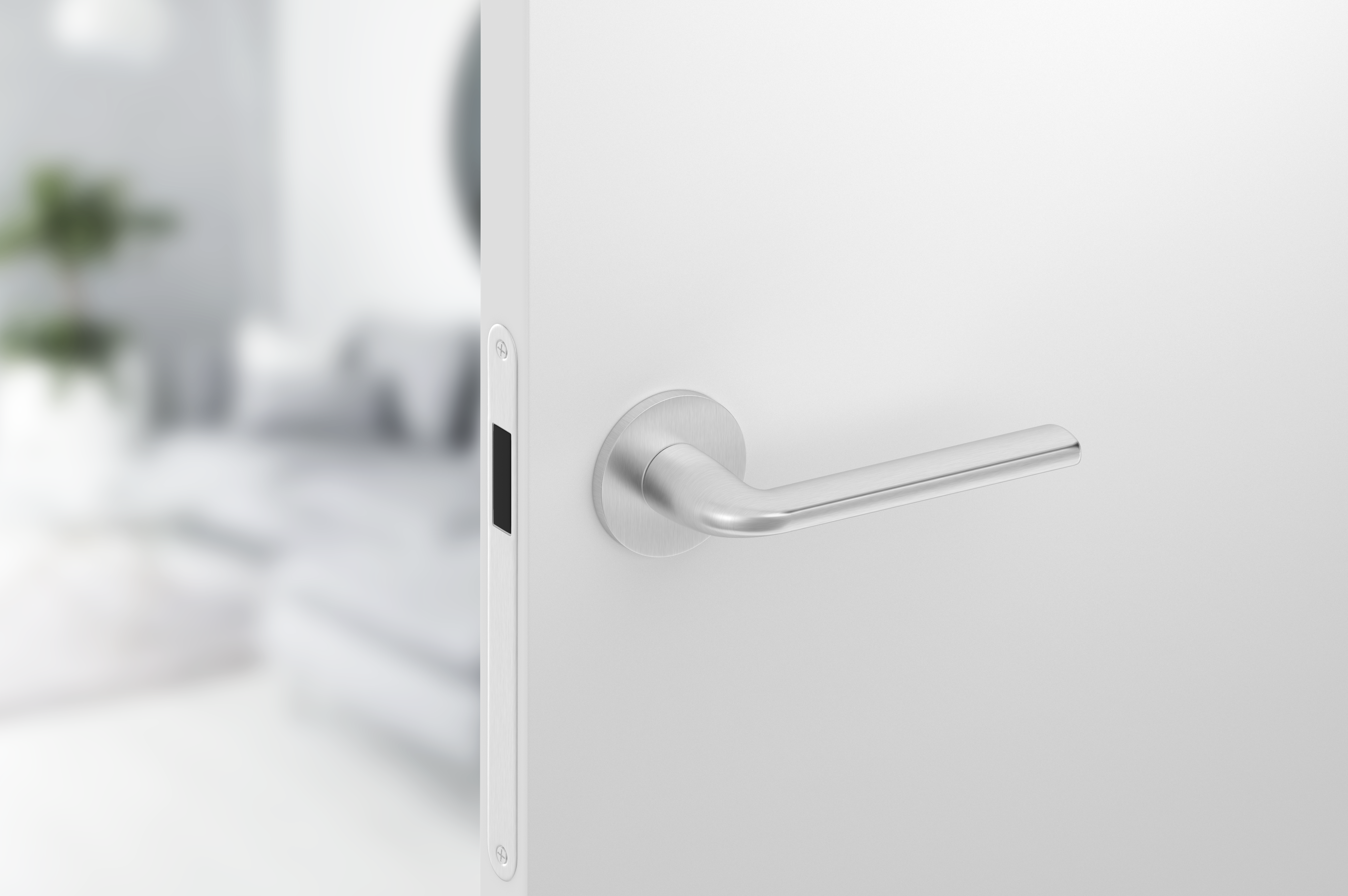 - Die Türklinke ist in der exklusiven Farbe Chrom satin erhältlich.