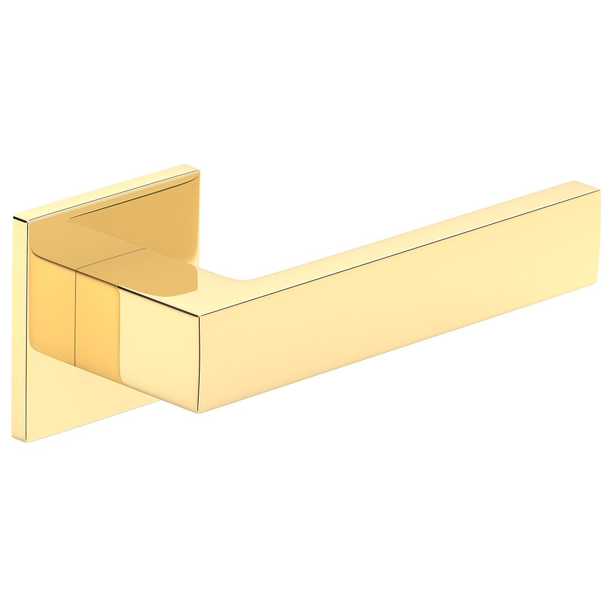 Premium Türbeschlag CUBE mit eckigen, schlanken Rosetten ohne Schlossrosette; messing poliert; Türgriff; Türklinke