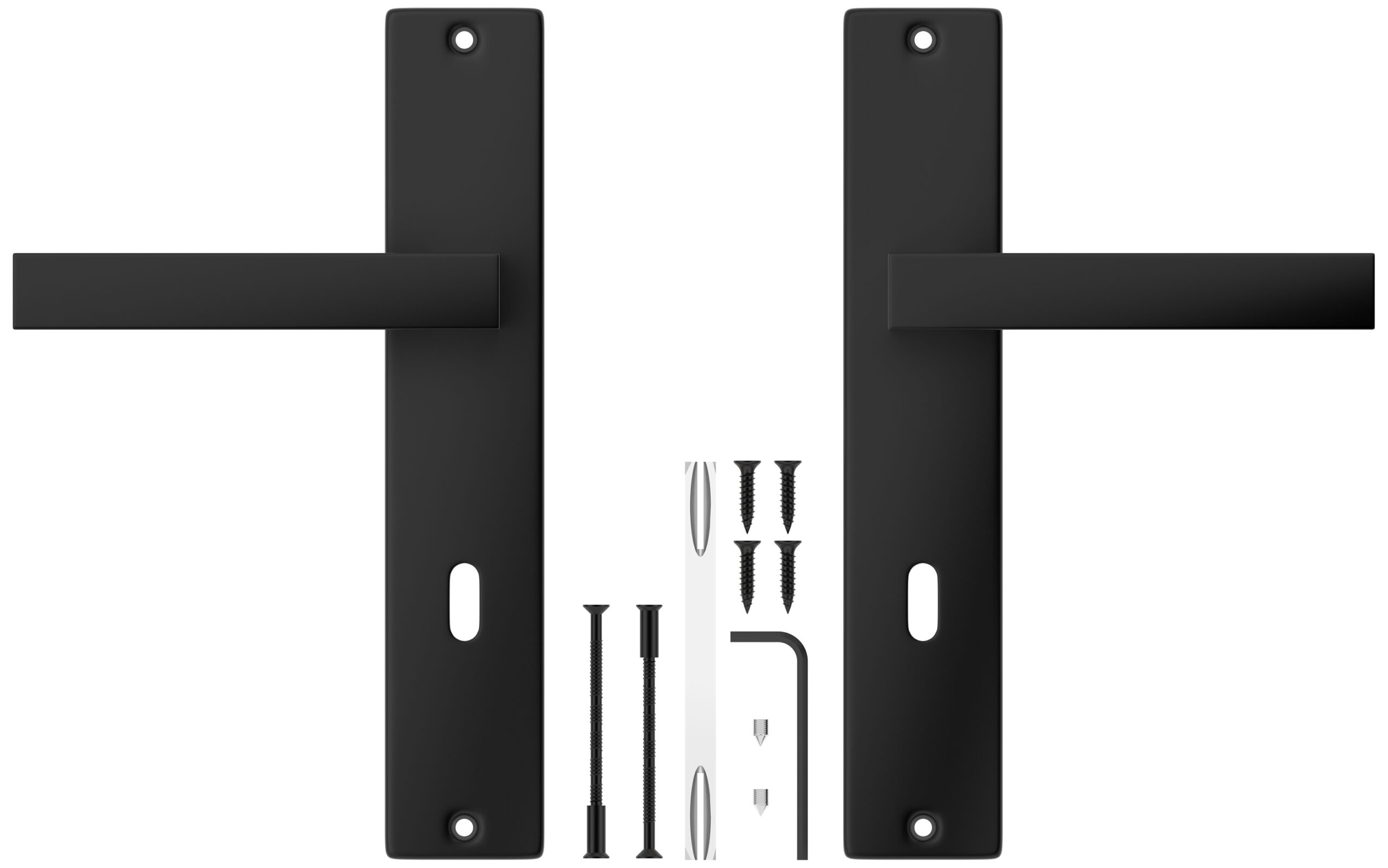 Das Türdrücker-Set besteht aus zwei BB-Langschildgarnitur Griffen für eine Tür. Ist universal und passt zu Links- als auch Rechtsflügel. Beigelegt sind natürlich auch alle nötigen Montageteile.