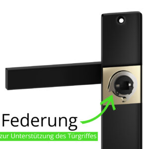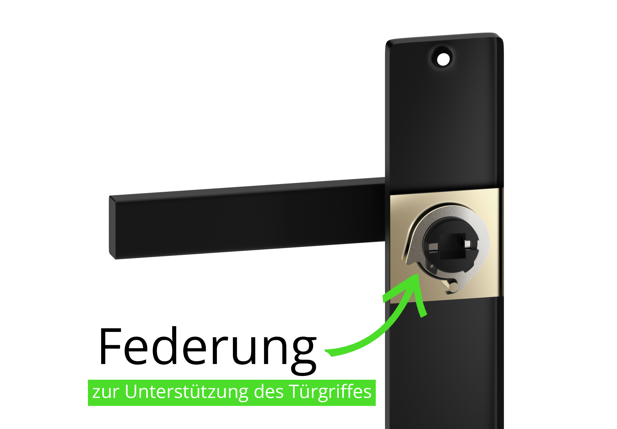 - Eine Federung zur Unterstützung des Türgriffes, die dafür sorgt, dass der Türgriff nicht hängen kann– zuverlässig, langlebig und komfortabel.