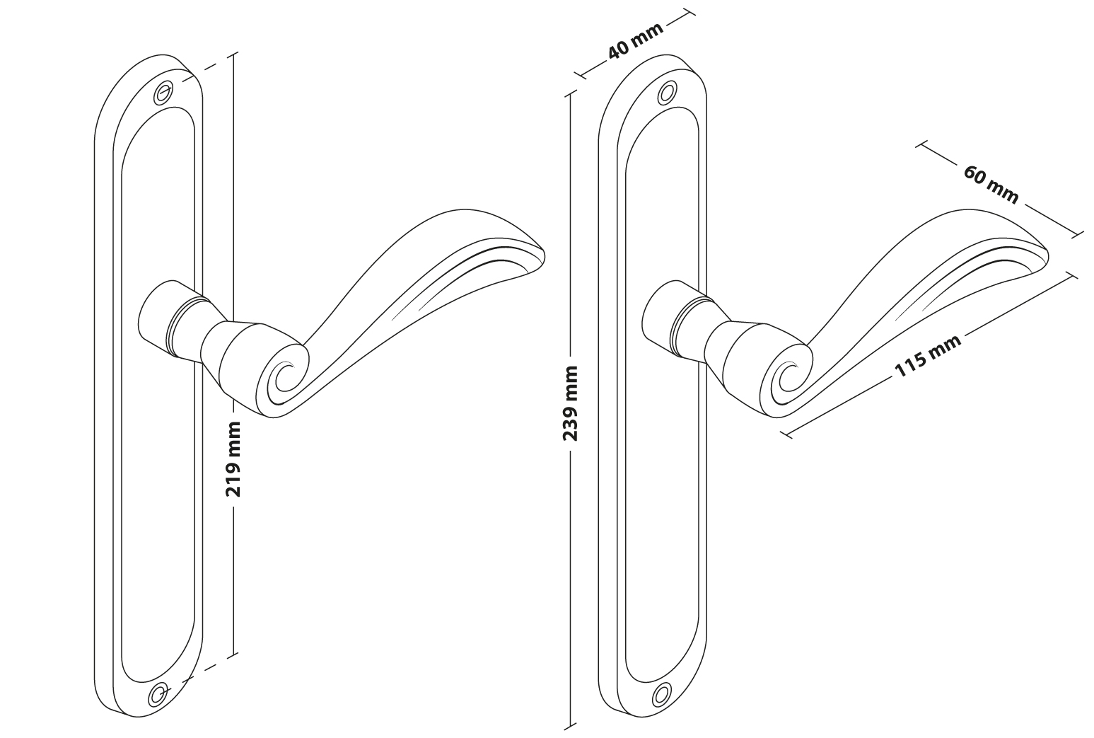 2 Türgriffe mit Blindschildgarnitur, inkl. Befestigungsmaterial.