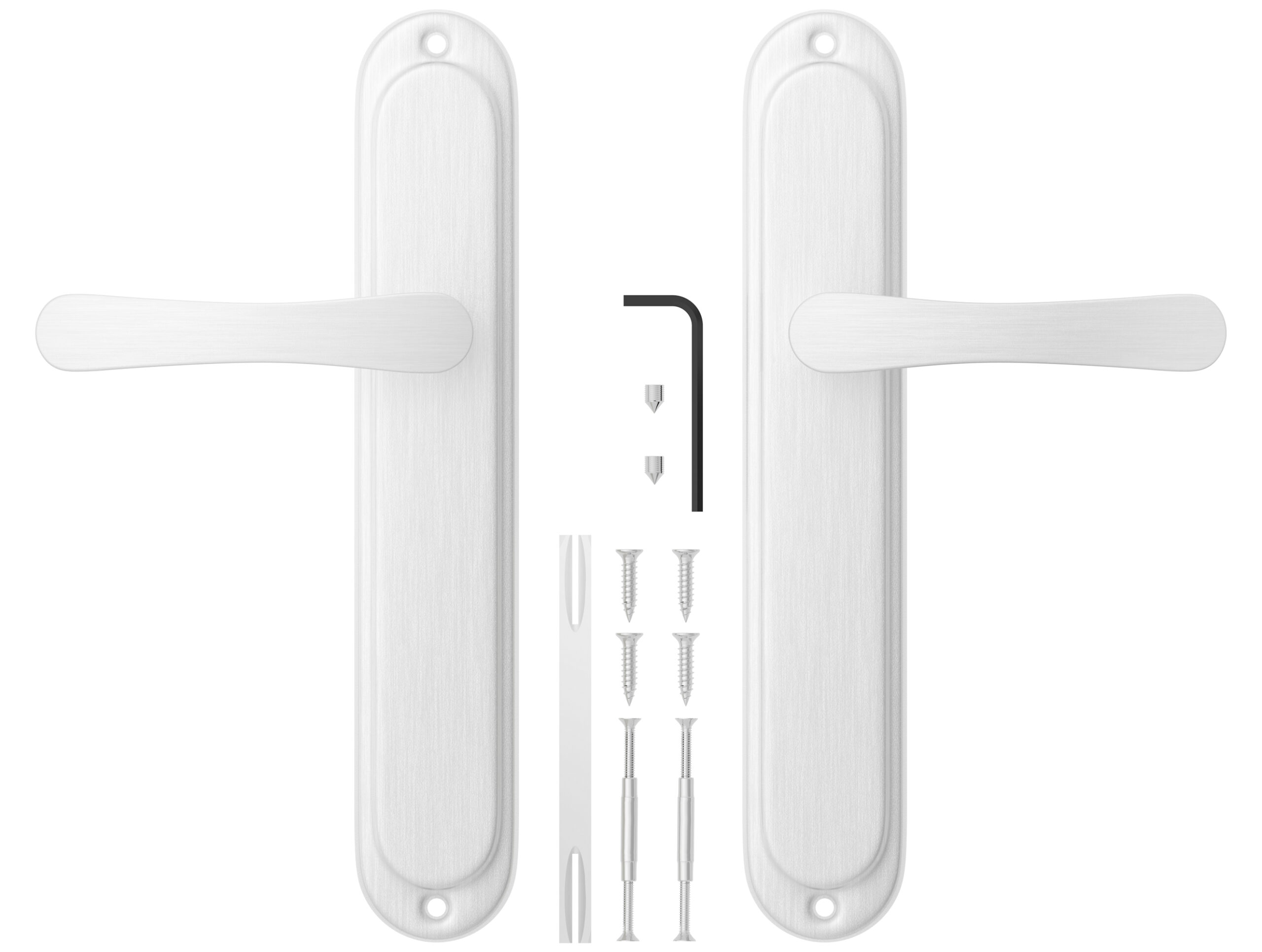 Das Türdrücker-Set besteht aus zwei Blindschildgarnitur Griffen für eine Tür. Ist universal und passt zu Links- als auch Rechtsflügel. Beigelegt sind natürlich auch alle nötigen Montageteile.