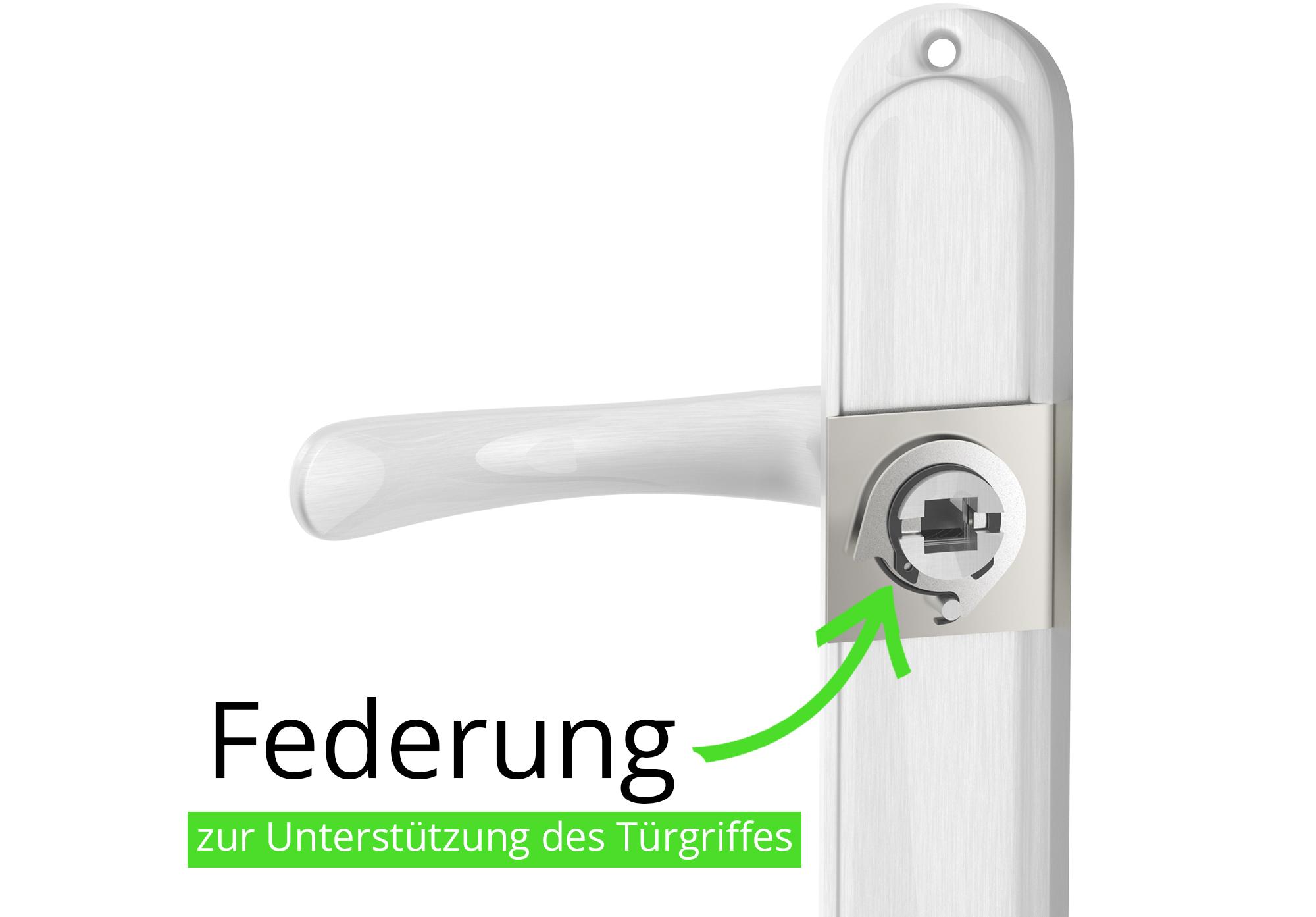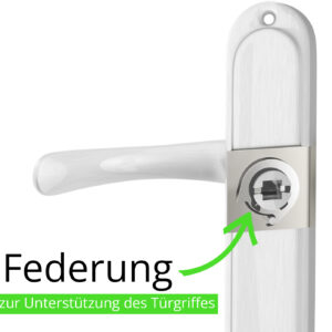 - Eine Federung zur Unterstützung des Türgriffes, die dafür sorgt, dass der Türgriff nicht hängen kann – zuverlässig, langlebig und komfortabel.