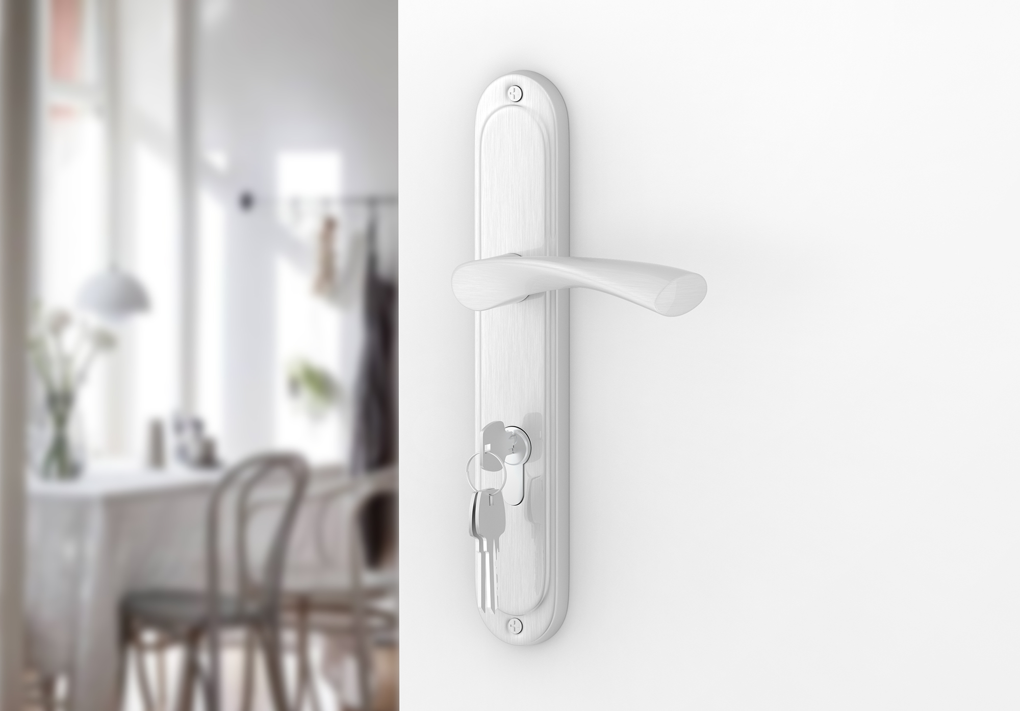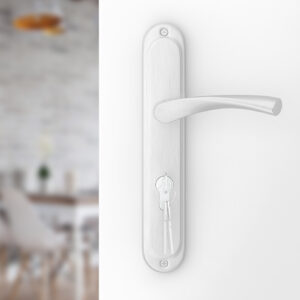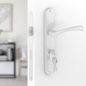 Ein klassischer PZ-Langschildgarnitur Roma-Griff für Türen mit Zylinderschloss mit zeitlosem Design, der perfekt zu Innenräumen im Retro-Stil passt. Der Türgriff ist in der stets modischen Silber (Nickel) -Farbe erhältlich.