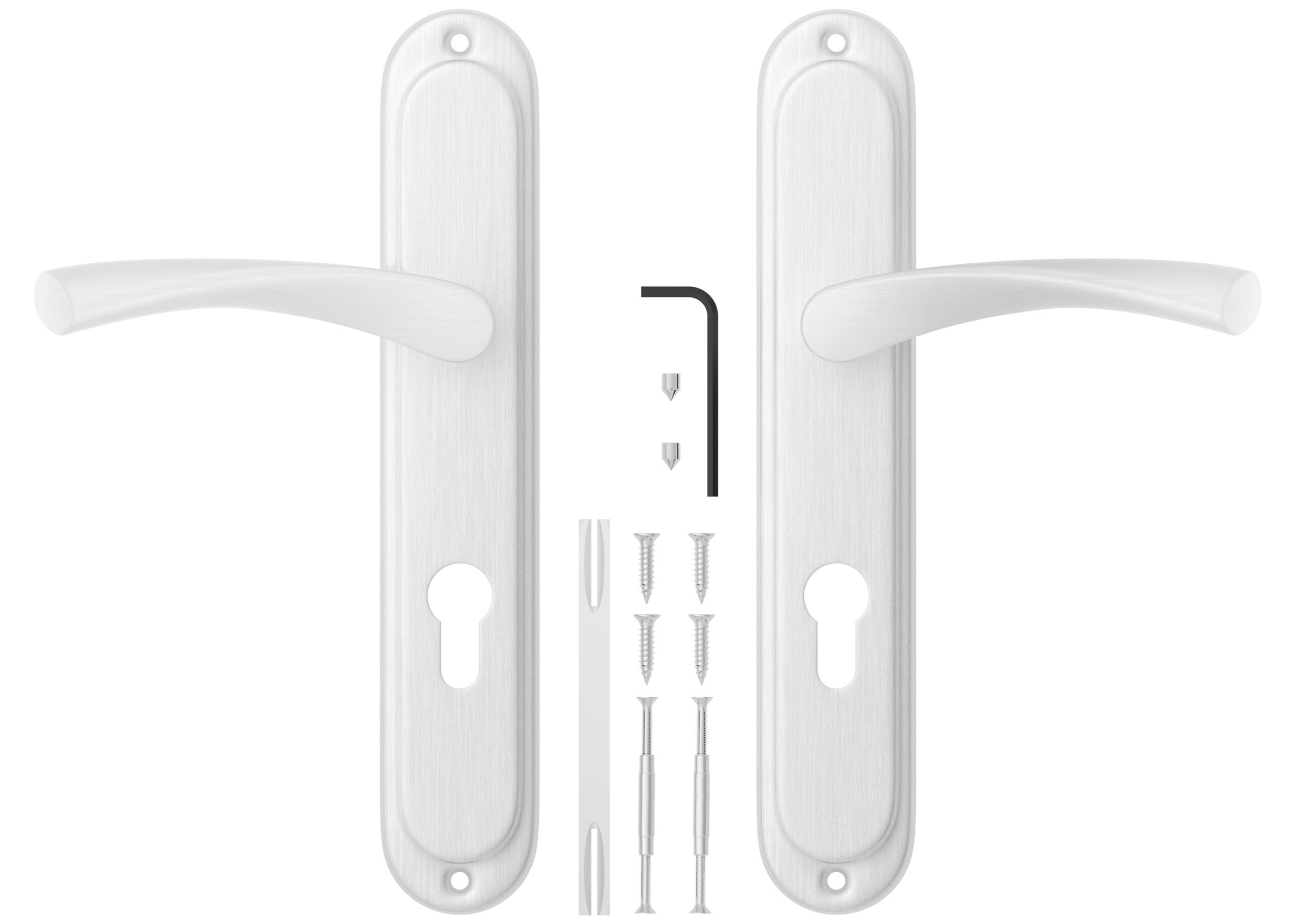 2 Türgriffe mit PZ-Langschildgarnitur, inkl. Befestigungsmaterial.